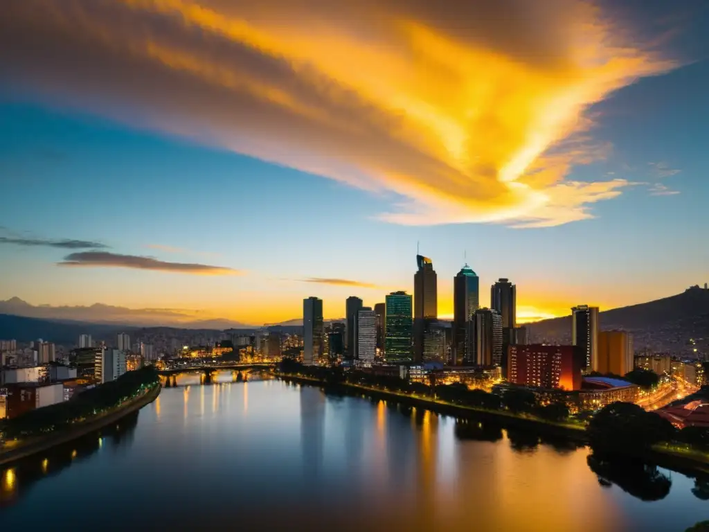 Vibrante atardecer en Bogotá, Colombia, reflejando progreso y modernidad